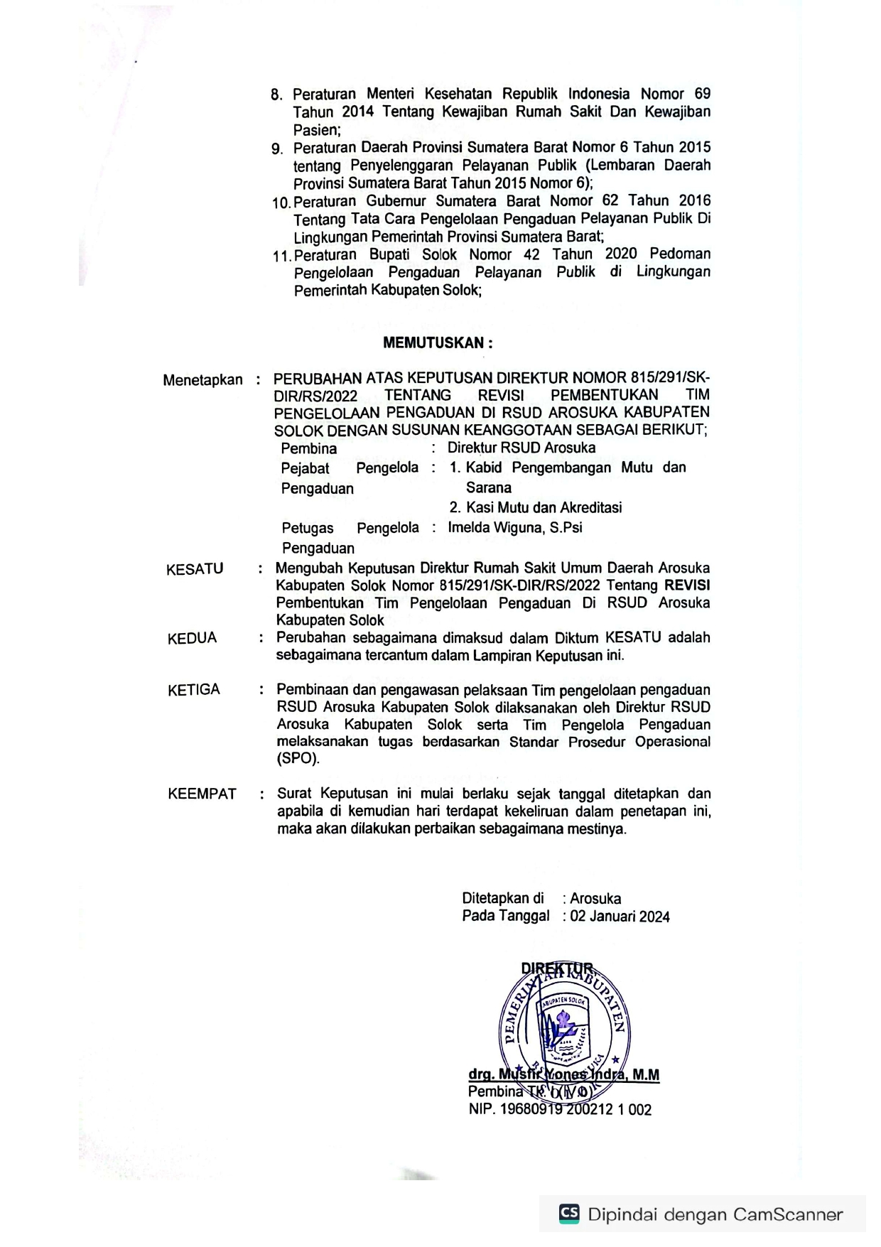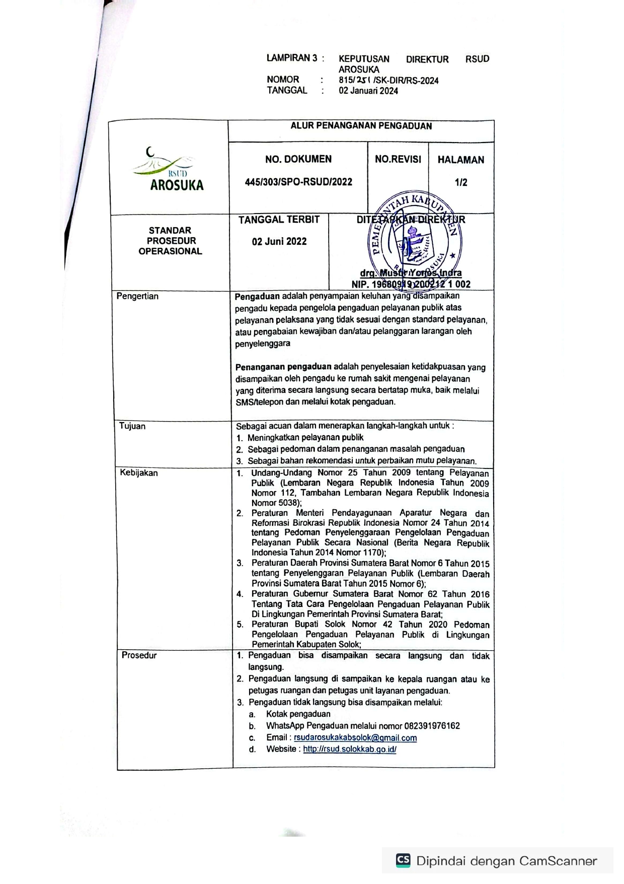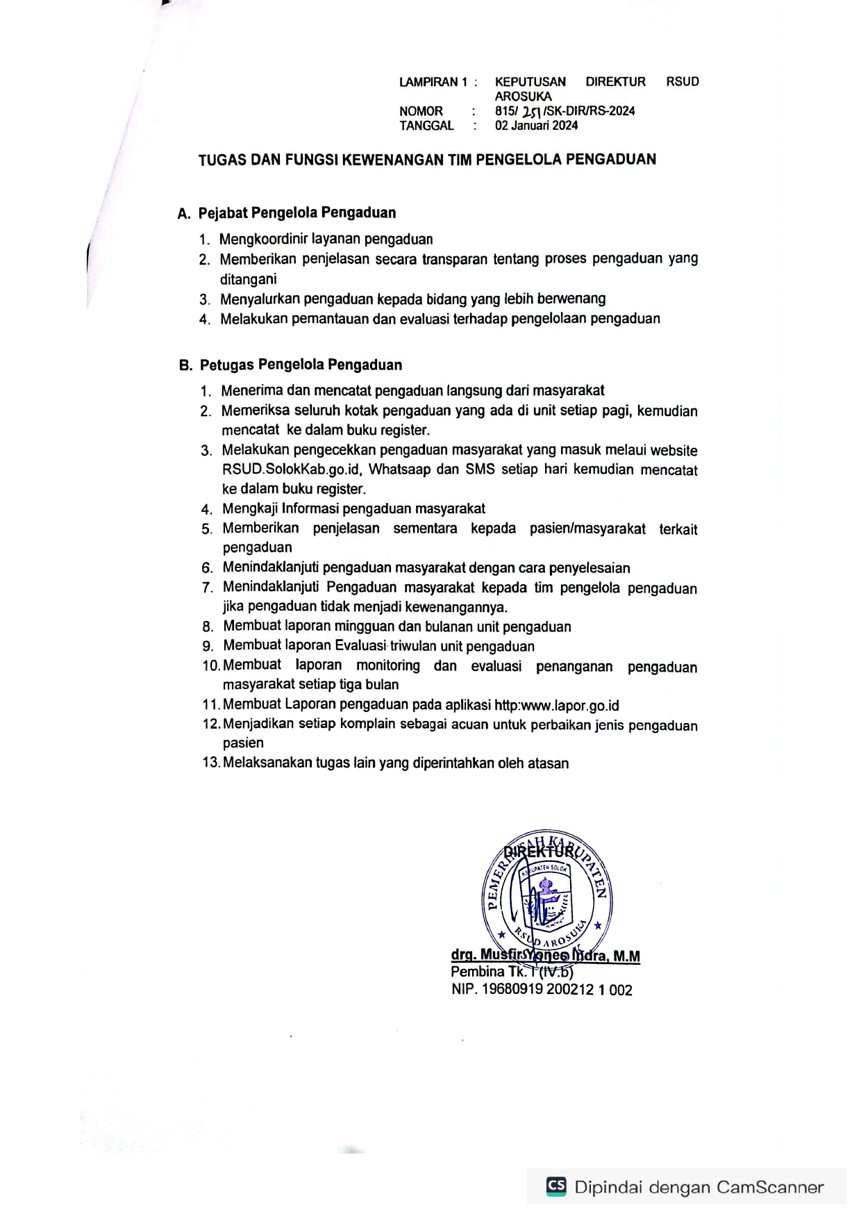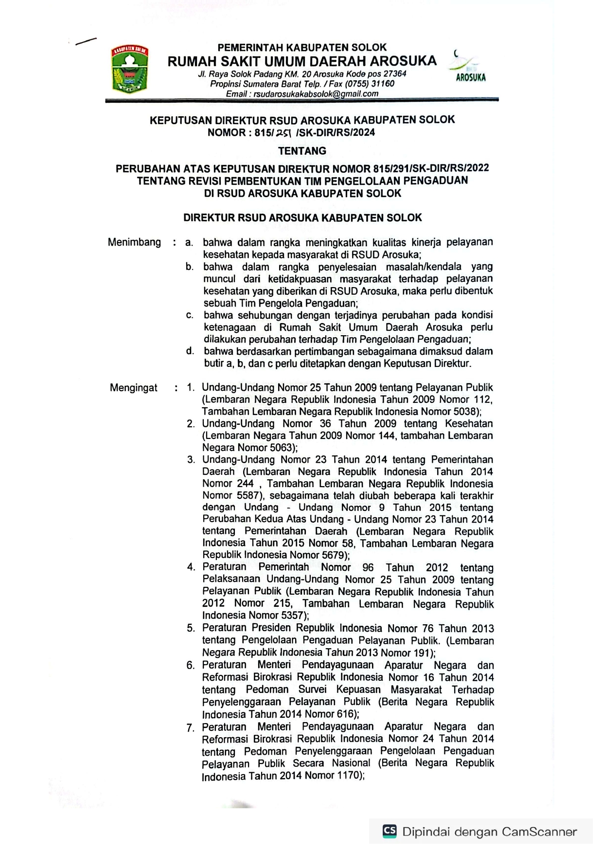SK Pengaduan Rsud Arosuka